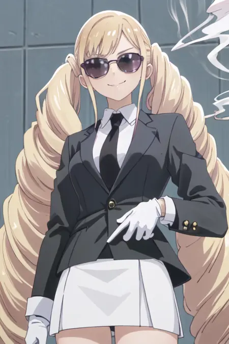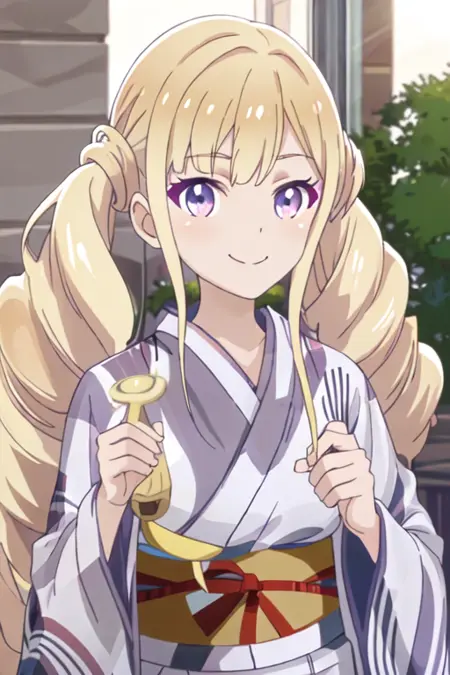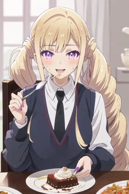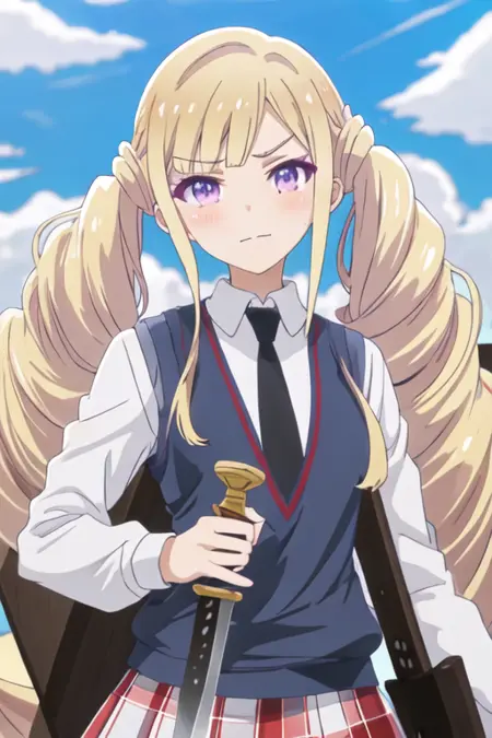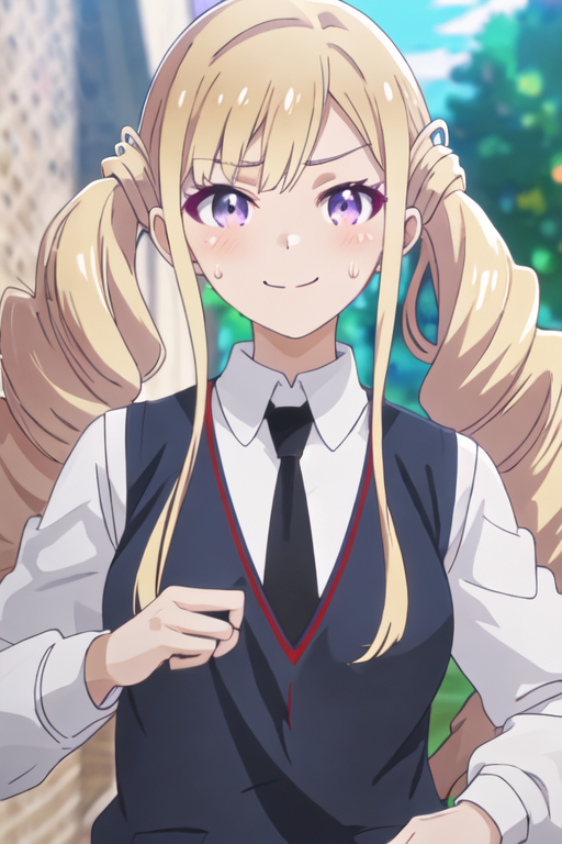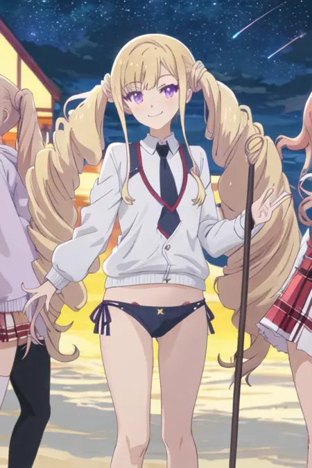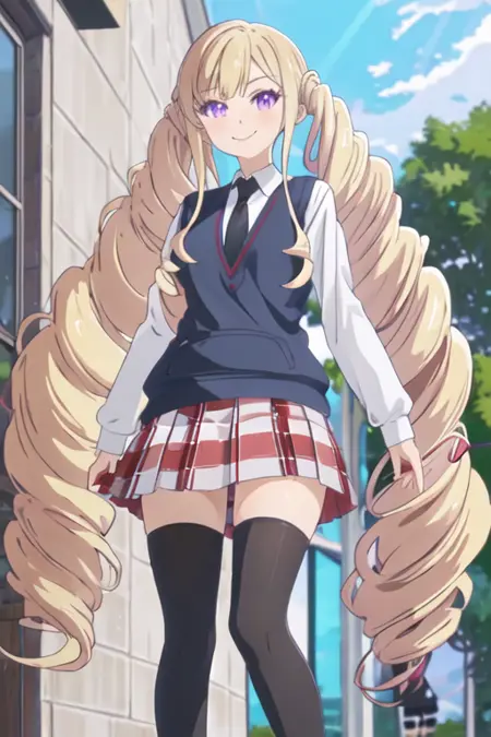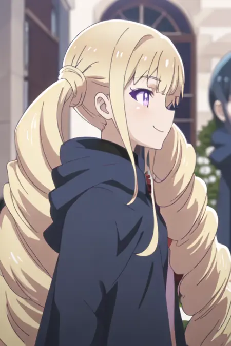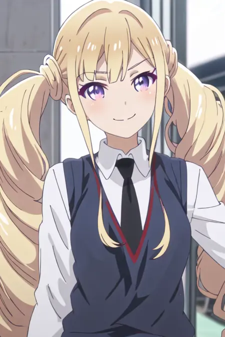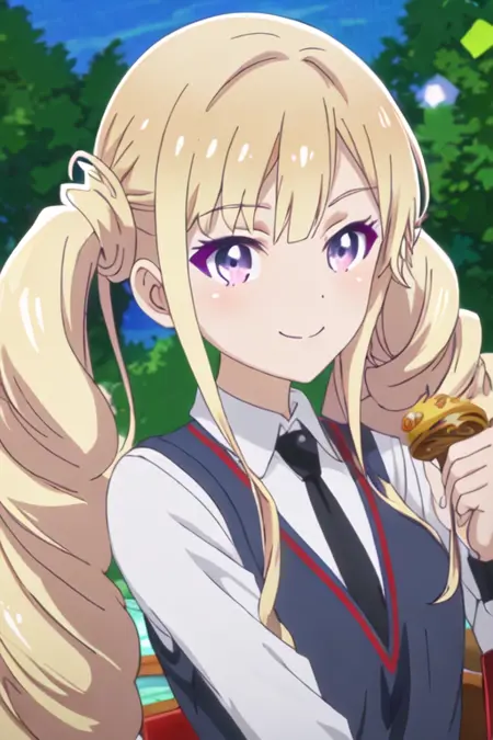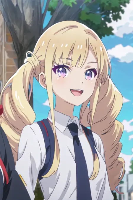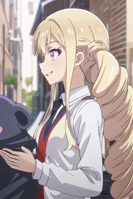 トリガーワードは shiahuoshiyuroze_kumakumakumabear で、推奨タグは best quality, masterpiece, highres, solo, {shiahuoshiyuroze_kumakumakumabear:1.15}, blonde_hair, long_hair, twintails, purple_eyes, drill_hair, bangs, necktie, smile です。