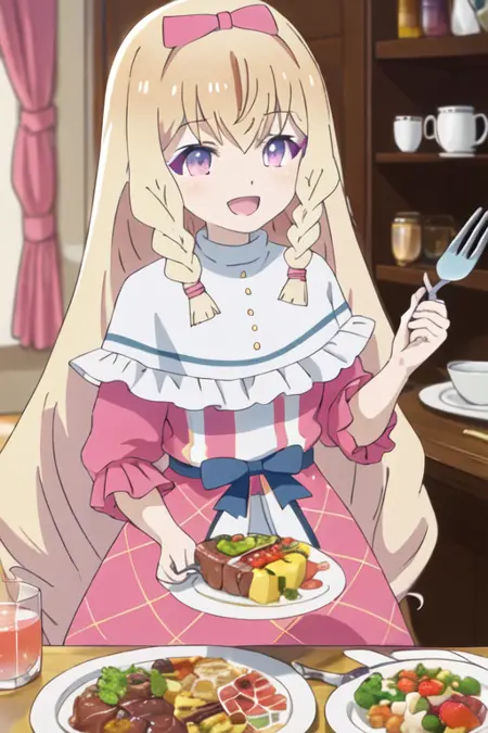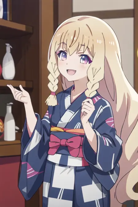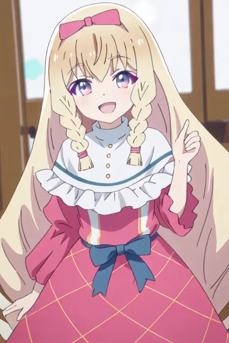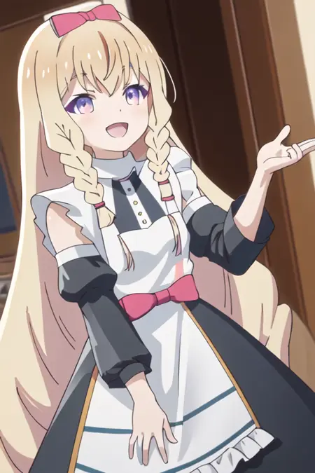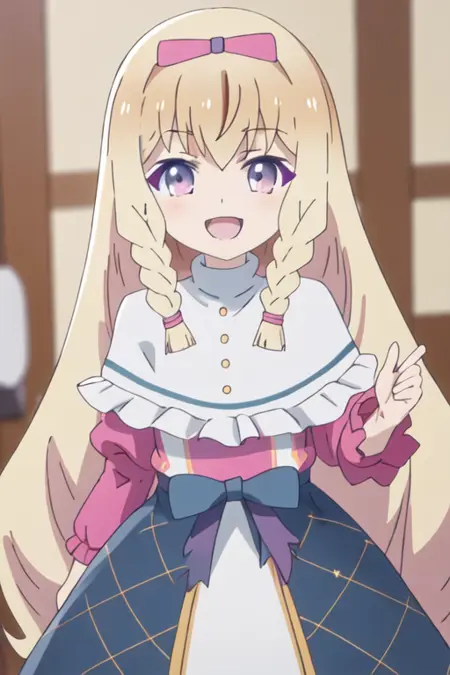 トリガーワードはnoire_foschurose_kumakumakumabear、推奨タグはbest quality, masterpiece, highres, solo, {noire_foschurose_kumakumakumabear:1.15}, blonde_hair, long_hair, braid, bow, hair_bow, bangs, twin_braids, purple_eyes, smile, blush, open_mouthです。