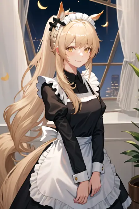 - The pruned character tags are animal ears, long hair, blonde hair, horse ears, animal ear fluff, horse girl, ponytail, yellow eyes, tail, horse tail, bow, hair bow, black bow, extra ears, breasts. You can add them into prompts when core features (e.g. hair color) of character is not so stable.