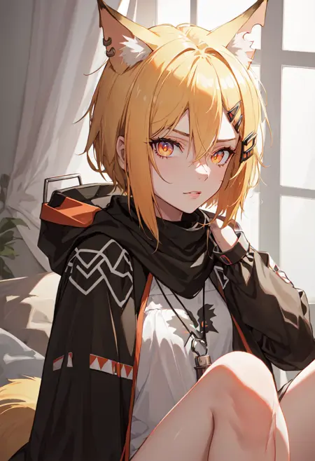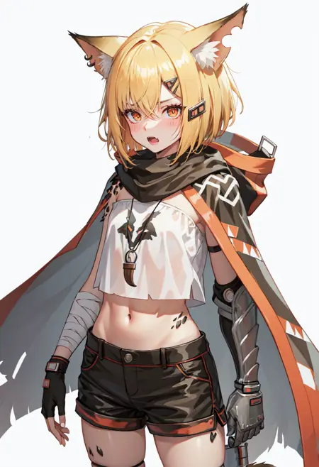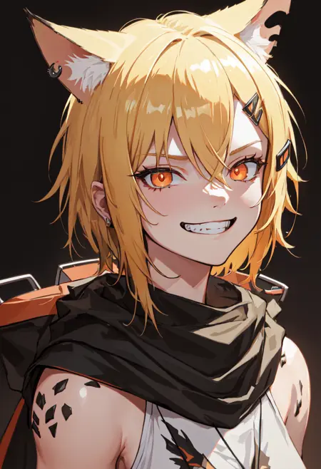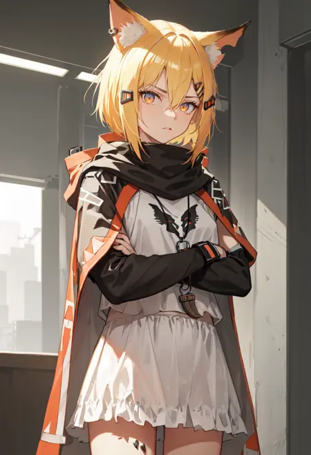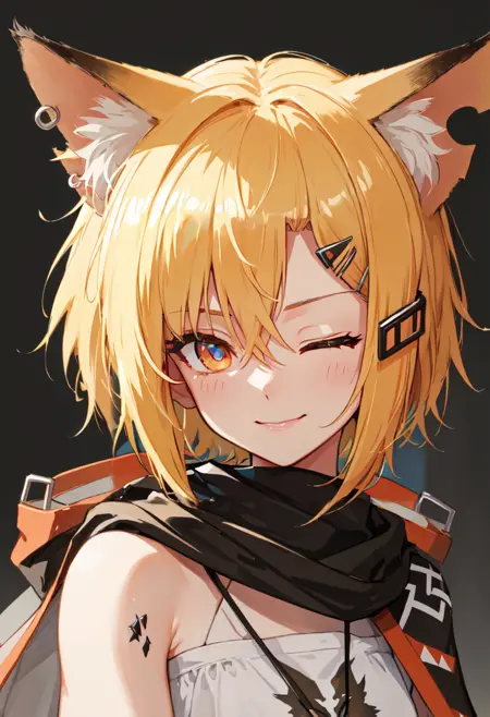 トリガー語はvermeil_arknights、削除されたタグはanimal_ears, fox_ears, short_hair, blonde_hair, notched_ear, animal_ear_fluff, hair_ornament, hairclip, fox_girl, orange_eyes, hair_between_eyes, tail, fox_tailです。ある特徴(例:髪の色)が安定しない場合、これらのタグをプロンプトに追加してください。