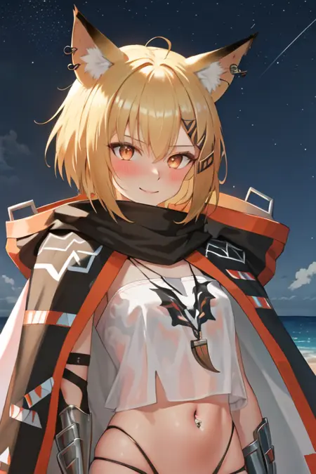 触发词为 vermeil_arknights,精简标签为 animal_ears, fox_ears, short_hair, blonde_hair, notched_ear, animal_ear_fluff, hair_ornament, hairclip, fox_girl, orange_eyes, hair_between_eyes, tail, fox_tail。当某些特征(如发色)在某些情况下不够稳定时,您可以将这些标签添加到您的提示词中。