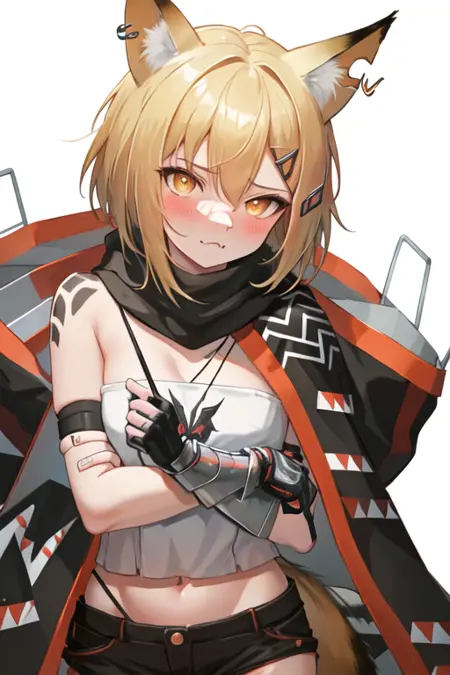 触发词为 vermeil_arknights,精简标签为 animal_ears, fox_ears, short_hair, blonde_hair, notched_ear, animal_ear_fluff, hair_ornament, hairclip, fox_girl, orange_eyes, hair_between_eyes, tail, fox_tail。当某些特征(如发色)在某些情况下不够稳定时,您可以将这些标签添加到您的提示词中。
