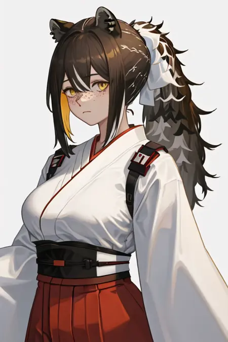 - 필터링된 캐릭터 태그는 동물 귀, 너구리 귀, 갈색 머리, 노란 눈, 긴 머리, 너구리 소녀, 꼬리머리, 가슴, 눈 사이의 머리카락, 주근깨, 너구리 꼬리, 꼬리, 큰 가슴, 다색 머리입니다. 캐릭터의 핵심 특징(예: 머리색)이 안정적이지 않을 때 이 태그들을 프롬프트에 추가할 수 있습니다.