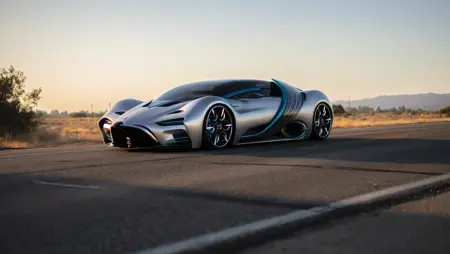 技術的な面では、紙の上では優れた構想と奇妙な矛盾が混在していた。基本的なコンセプトは確実だった:プロトン交換膜(PEM)燃料電池が電力を生成し、4つの軸方向磁束モーターを駆動して驚異的な2,038馬力を生み出す。重いリチウムイオン電池の代わりに、軽量な超電容(スーパーキャパシタ)を用いてエネルギーを蓄積・放出することで、劣化なしに超高速充放電が可能になる—これは高性能車両にとって完璧な解決策だ。車体はカーボン–チタンモノコック構造で、車両重量を2,800ポンド以下に抑えることを目指し、5,100ポンドのリマック・ネベラといったBEVハイパーマシンの半分以下という軽さを実現した。しかし、不要で技術的に疑わしい3段自動トランスミッションのような、仕様上の奇妙な矛盾が専門家たちの間でデザインの成熟度への疑問を抱かせた。