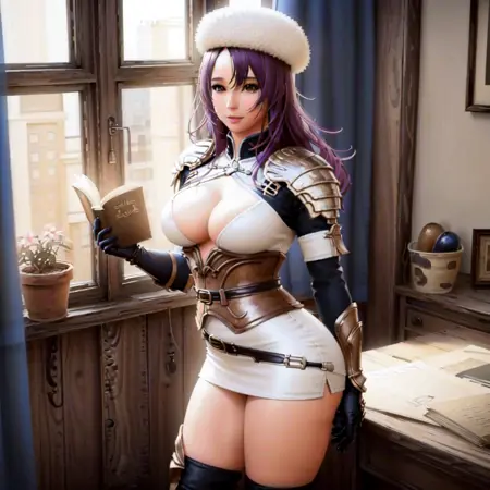 即使经过多次训练,她对背面视角仍有问题,因训练集中无太多后视图。举例而言,建议优先使用盔甲——何必看她的屁股?她不是为擦边而设计的。