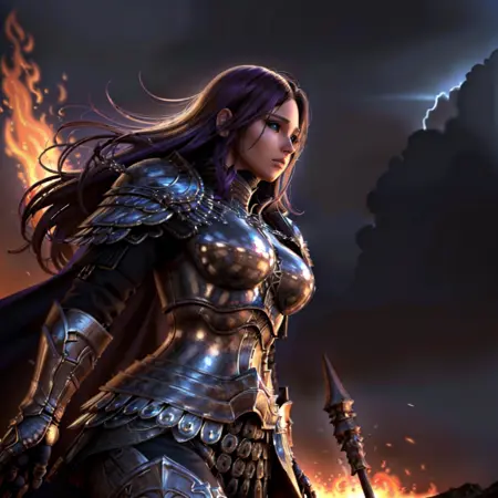 Outfit 1 (armor) prompts: armor, shoulder armor, gauntlets, breastplate, knight, full armor, chainmail, plate armor, boobplate, black cloak