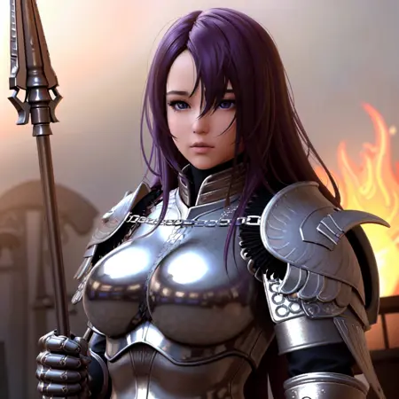 Outfit 1 (armor) prompts: armor, shoulder armor, gauntlets, breastplate, knight, full armor, chainmail, plate armor, boobplate, black cloak