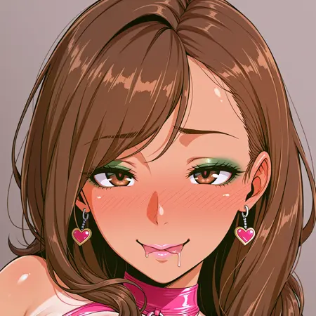 主な衣装(やや一貫性なし):(色)ラテックスのカットアウトドレス、アンダーブーブカットアウト、サイドブーブカットアウト、乳首ピアス、陰核ピアス、複数のブレスレット、ハート型イヤリング、ホープイヤリング、ブラックの thighhighs、ハイヒール