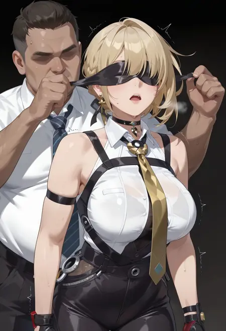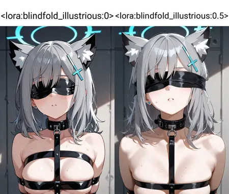 blindfold, blndfld, bdsm, covered eyes, restrained, 1girl, <lora:blindfold_illustrious:0.7>