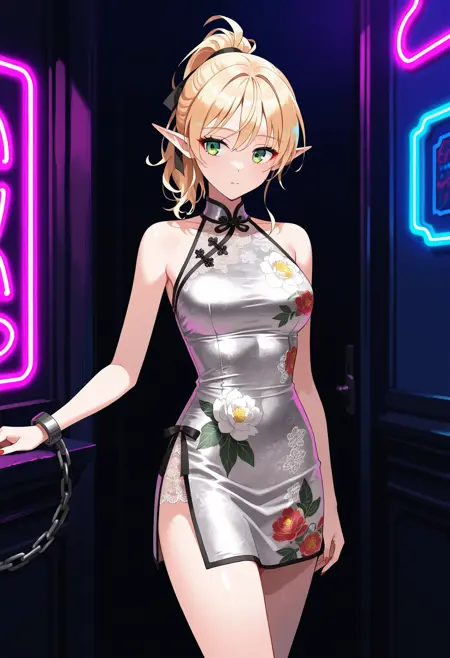 트리거 단어: asymmetrical66cheongsam, 중국 드레스, 짧은 드레스, 플로럴 프린트, 소매 없는 드레스, 넥할터 드레스, 비대칭 드레스, 비대칭 치마, 불균형 헤밍 드레스, 사이드 리본,