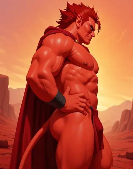このLoRA向けのプロンプトは以下の通りです:(Mephisto, muscular, monster)