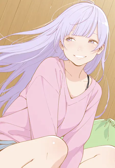 1girl, detailed face, cinematic angle, dynamic pose, solo, laughing joyfully, wearing casual clothing,