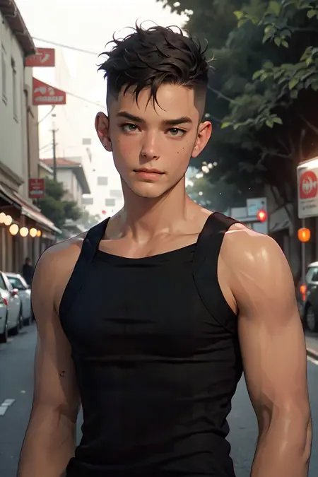 現代のファッションと男らしい魅力が融合した、あなたのためにデザインされたセクシーなタンクトップで、キャラクターが汗ばむワークアウト中でも、ビーチでくつろいでいても、自信に満ちた姿を演出します。力強いライン、魅力的なシルエット、他にはないフィット感で、これはただのタンクトップではなく、明確なスタイルのメッセージです。