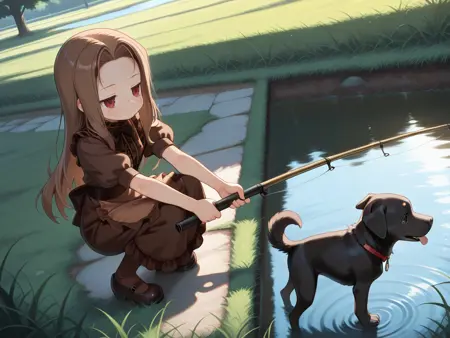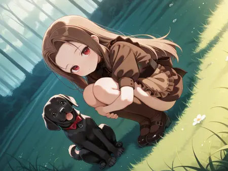 AIくんが何考えてるのかわかりませんが、犬を入れてると、時々飛び出すので、Negative Promptに sex を、含めておいてください。余計なことすんなし。