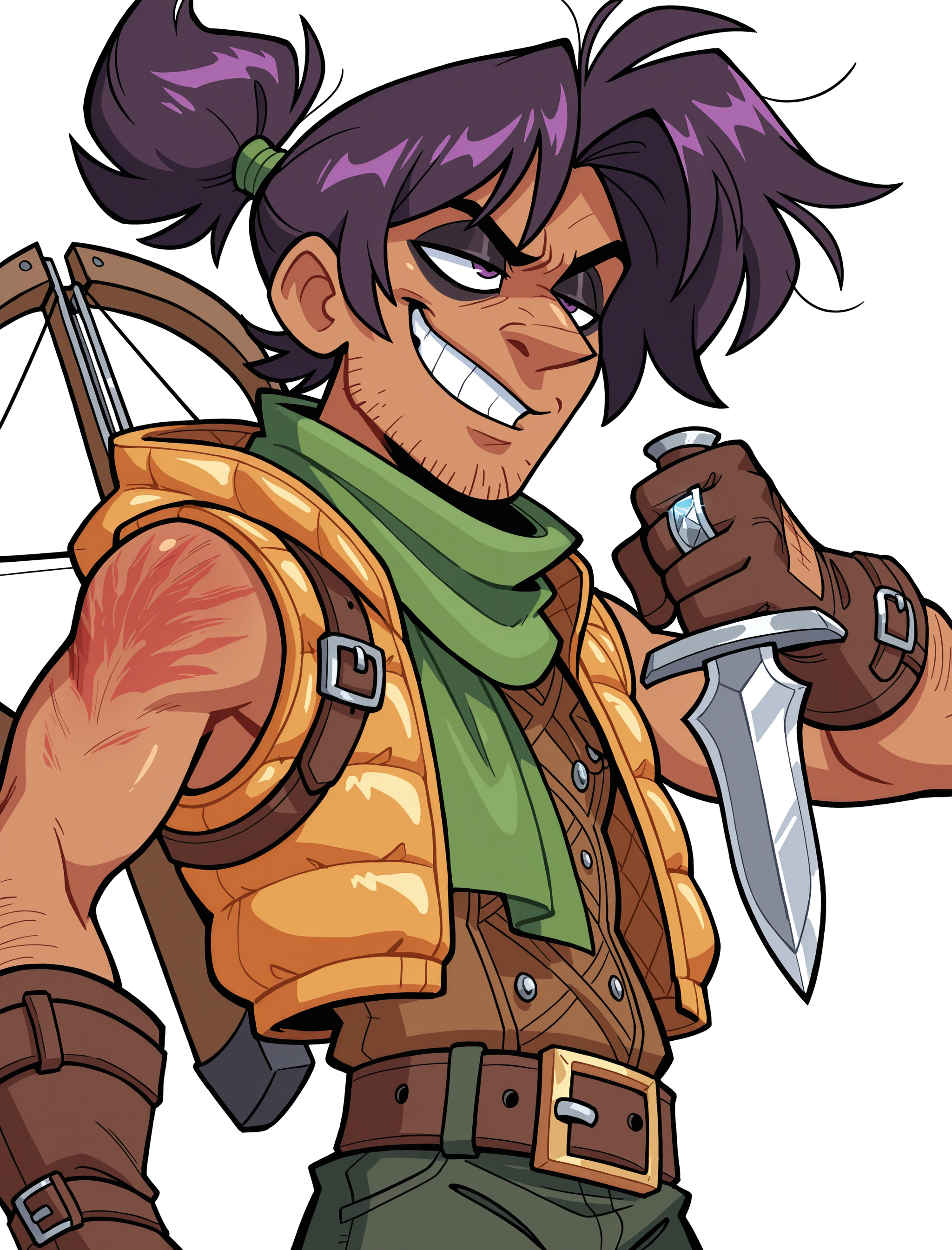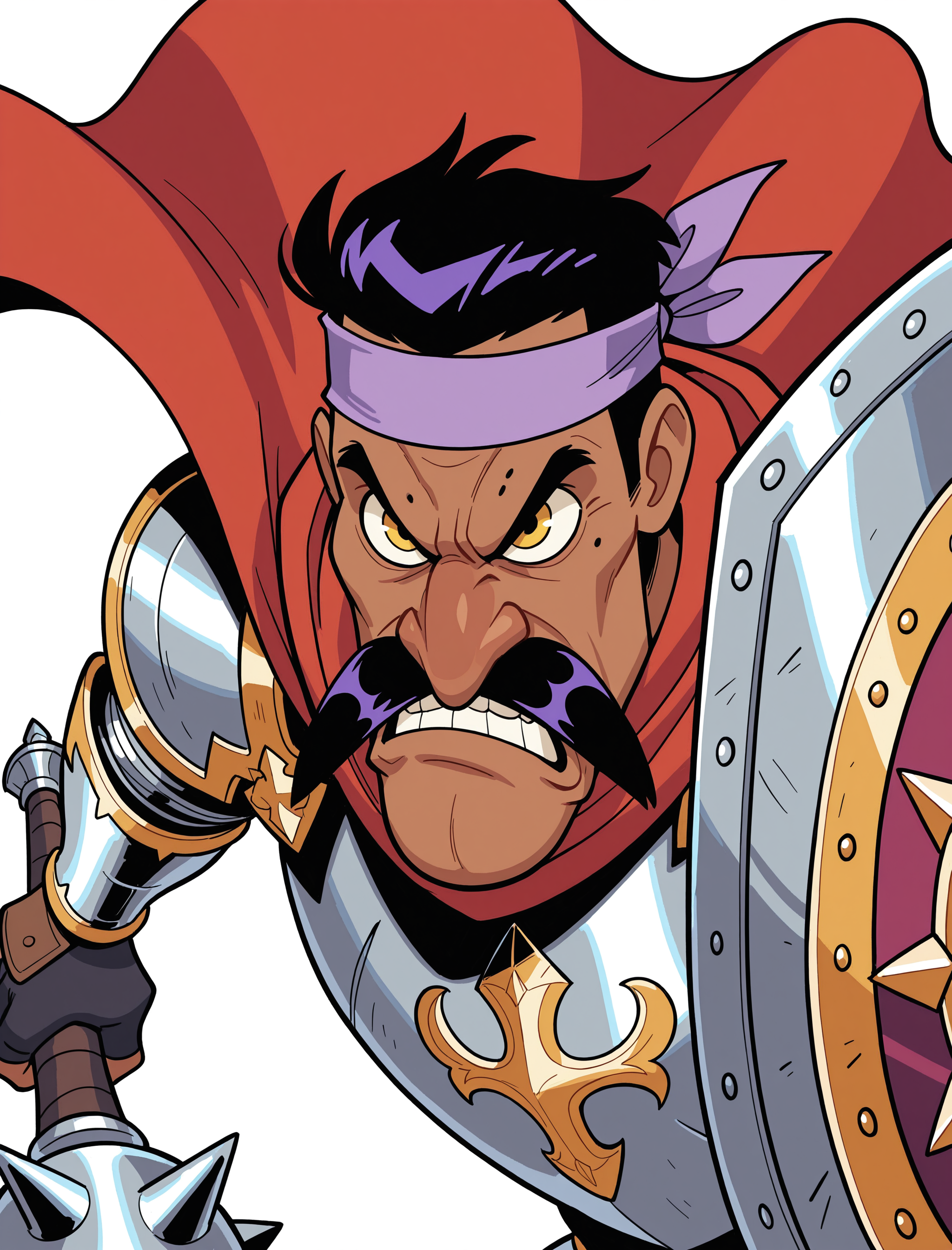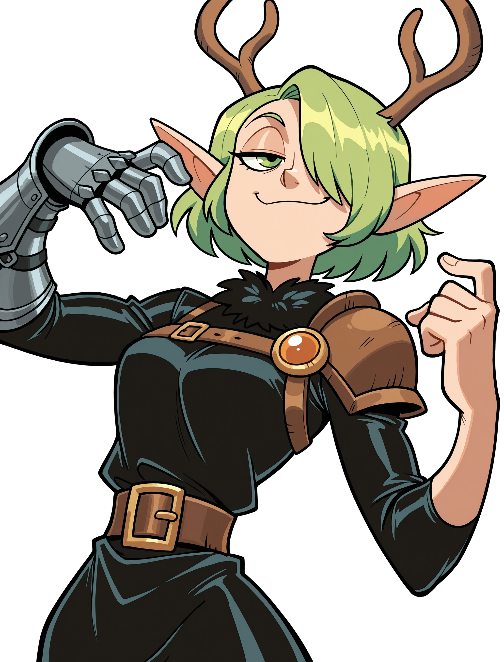 ((卡通, 幽默, 风格化)), 单人, 动态姿势, 锐利干净的线条, absurdres, 黑色轮廓, 鲜艳色彩, (饱和度:0.5), 白色背景, 简洁背景,快速负面提示词(是的,你会在负面提示中同时看到“平涂色”和“线稿”,这是为了剔除它们的负面效果,这是一种选择!)
