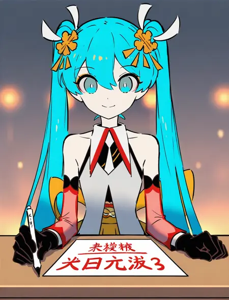 tags: aemiku3, 녹색 머리카락, 더블 태일, 어깨 드러난, 머리 장식, 분리형 소매, 소매 없음, 장갑