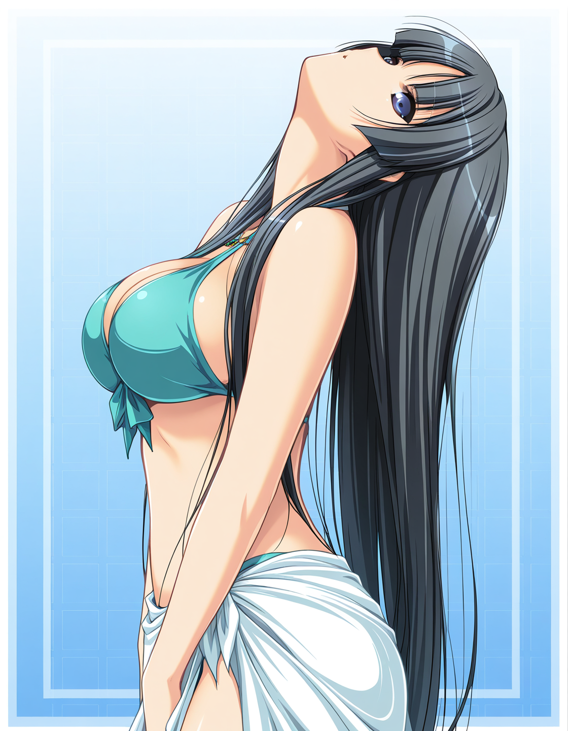 sagimiya kaguya, black hair, long hair, hime cut, blue eyes