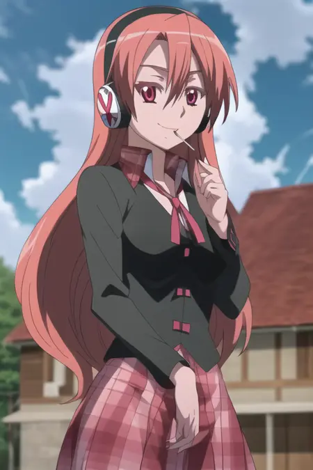 트리거 단어: chelsea (akame ga kill!), 긴 머리, 갈색 머리, 붉은 눈