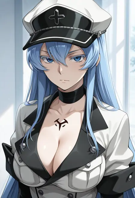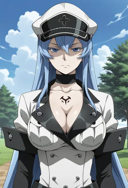 トリガー語: esdeath、ロングヘア、青い目、青い髪