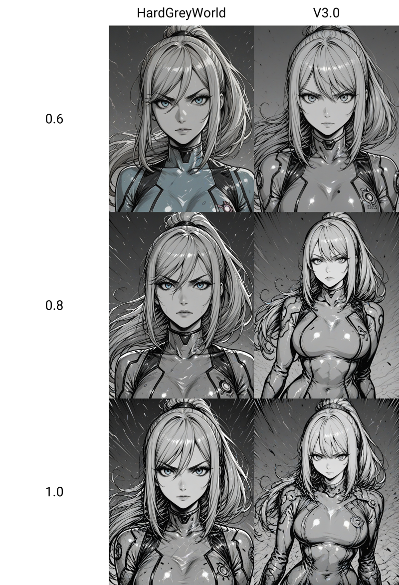 もしこのLoRA単体で、お使いのチェックポイントにグレースケール効果が発生しない場合(それがあなたの目的である場合)、グレースケールまたはモノクロを追加してください。