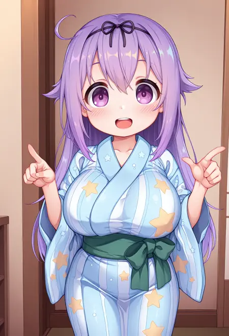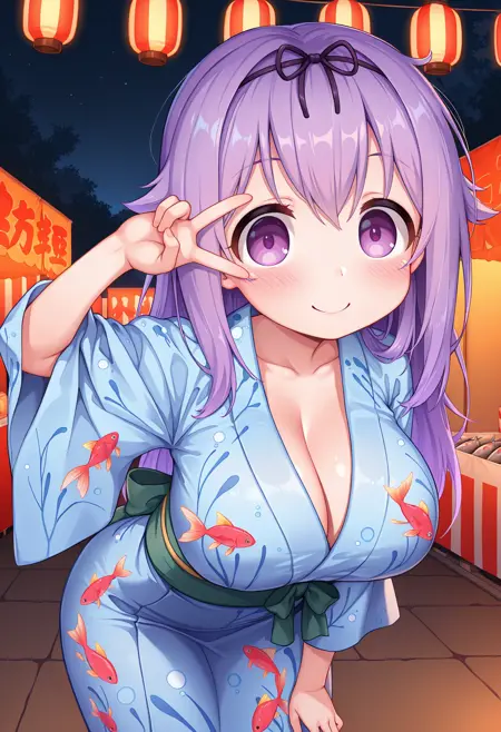 lbbdmaya, 長髪, 紫髪, 紫目, 髪リボン, 大きな胸, 短めの体型,