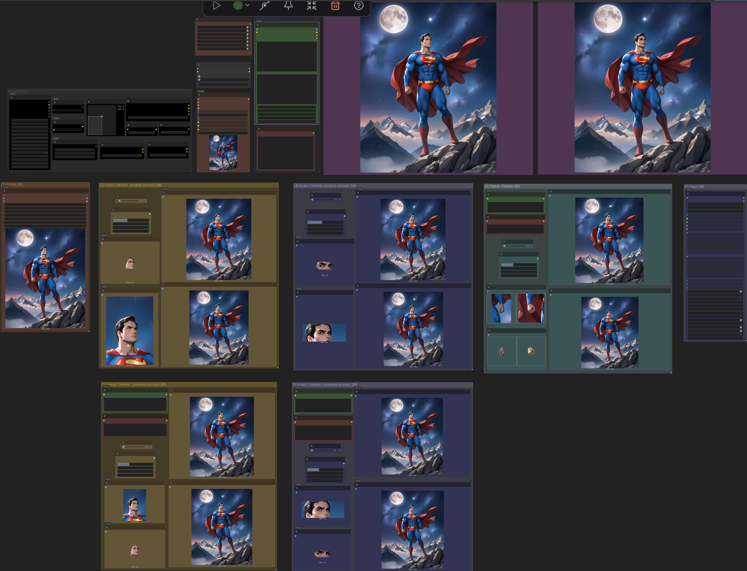 MarcoBento Hires + Detailer (Face+Eyes+Hands) Workflow