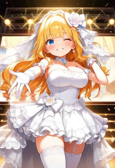 white thighhighs,veil,wedding dress,hair bow,hair flower,