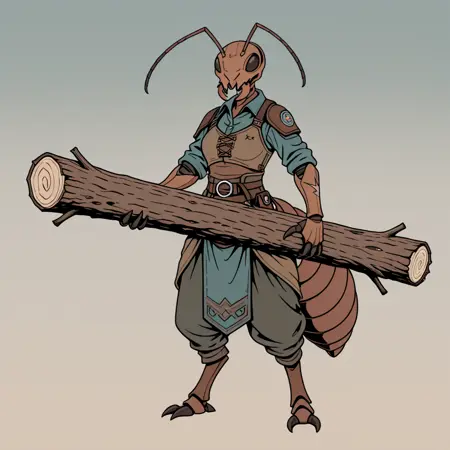 eciton, antfolk, arthropod, solid eyes, mandibles, antennae, abdomen tail
