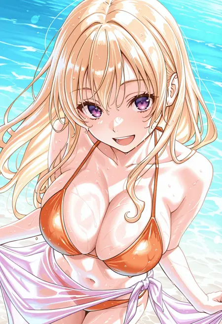 amam0riset00yk1 , 1girl, long hair, big breasts, purple eyes, blonde hair,