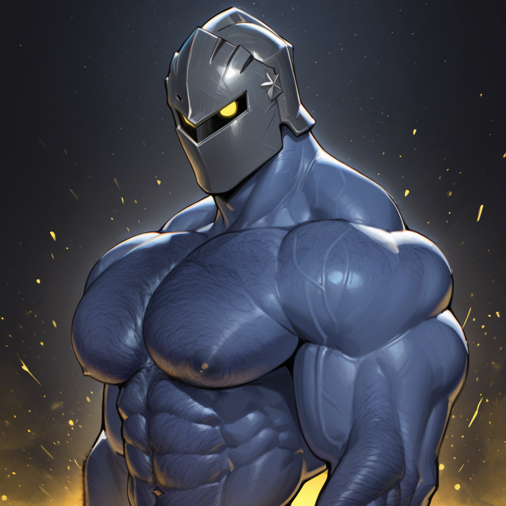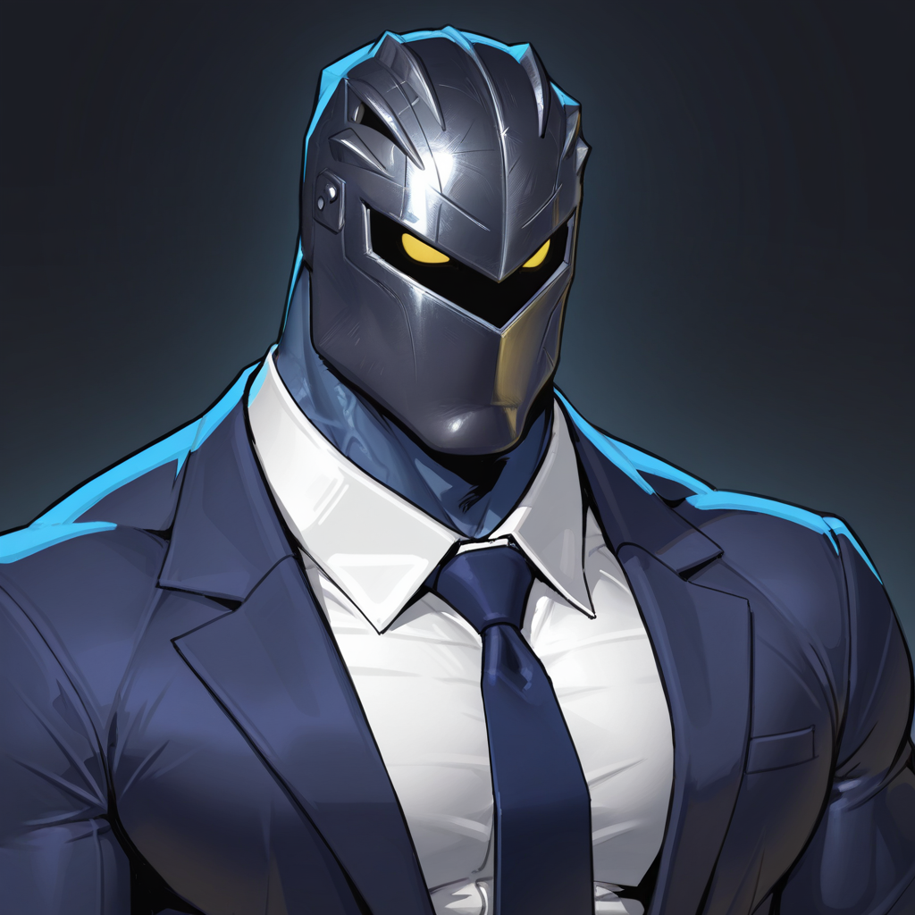 m3t4kn1ght, 黄色い目**, 滑らかな金属製のヘルメット,** 濃い青の肌