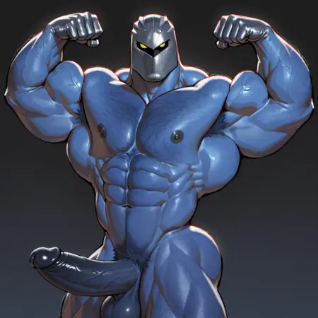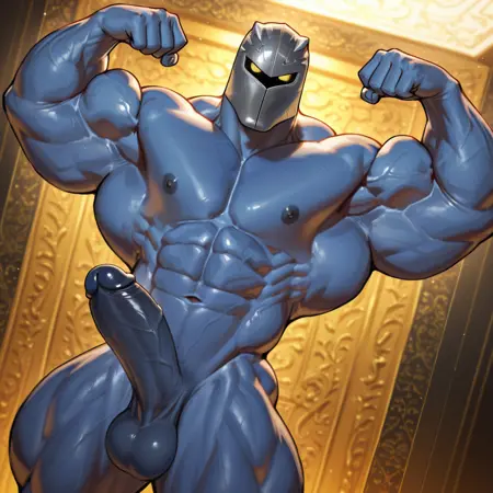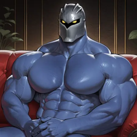 m3t4kn1ght, yellow eyes**, smooth metallic helmet,** dark blue skin