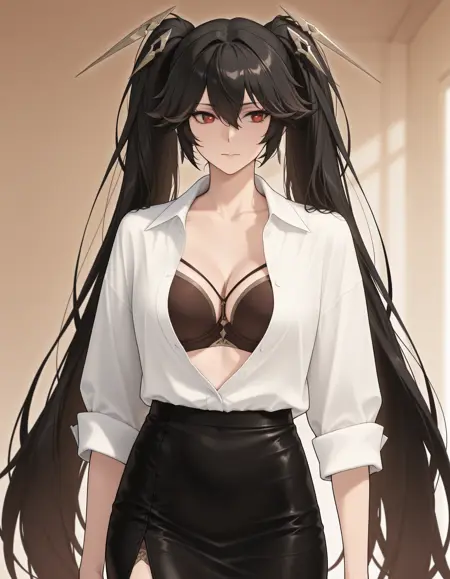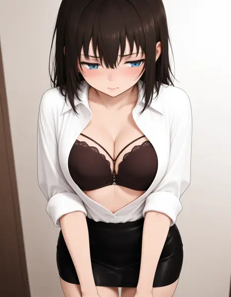 A mini sized LoRA model with sexy shirt & bra outfit worn by BJ.