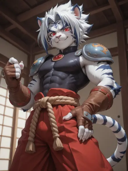 긍정적 키워드: 코겐타, 흰 호랑이, 흰색 몸체, 붉은 눈, 단발, onmyou taisenki