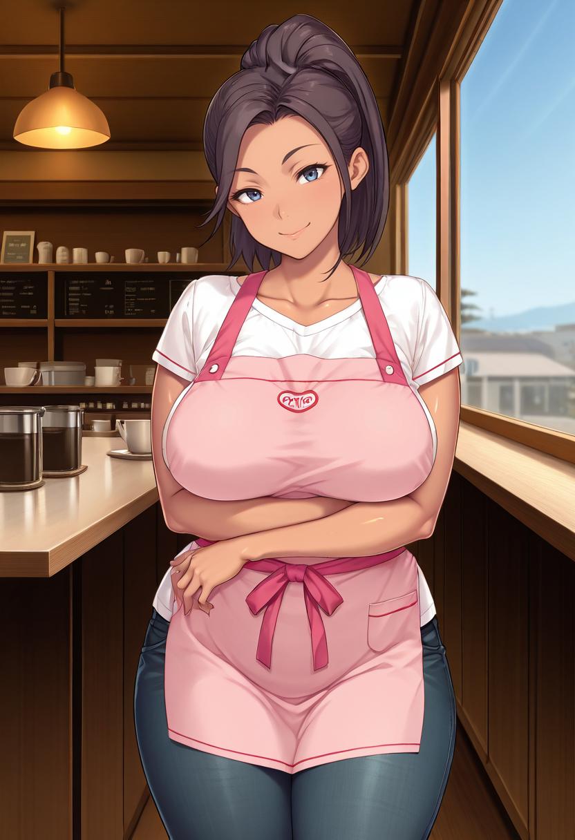 Ryoko Kudo: 1girl, blue eyes, black hair, tanned skin,