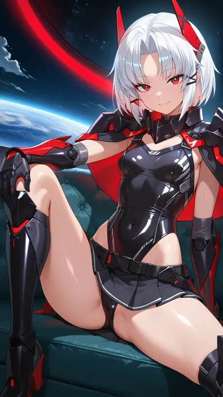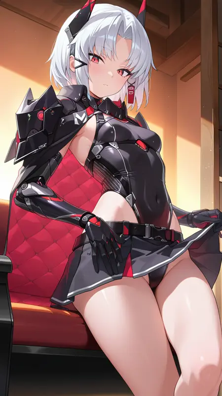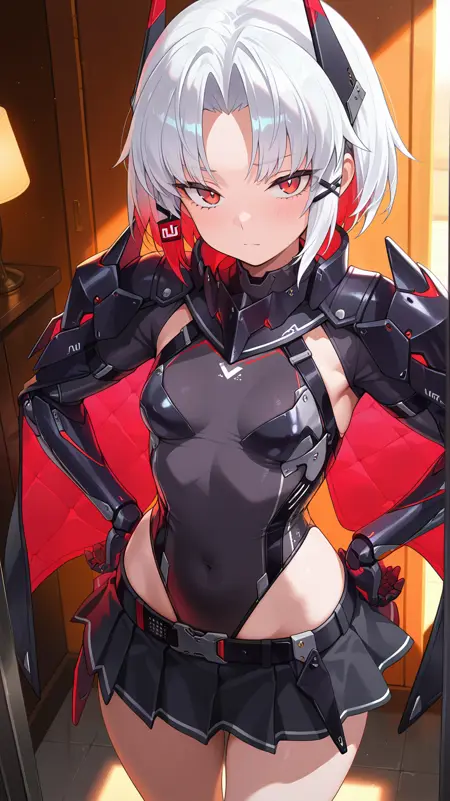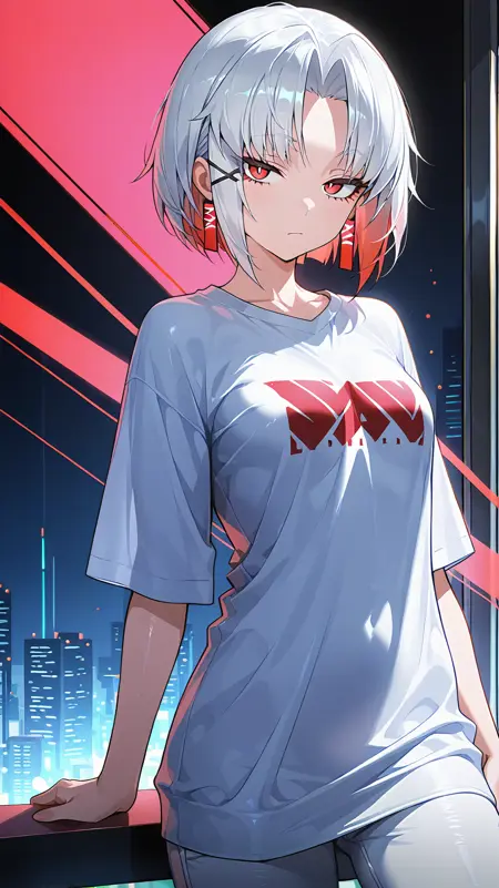 例のプロンプト:1girl, breasts, short hair, bangs, red eyes, white hair, small breasts,