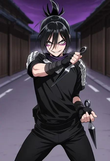 shinobi衣装トリガー(SpeedShinobiまたはFlashshinobi)を組み合わせてください。SpeedMask、Flash Cape、flaflash hair ornamentなどのアクセサリートリガーを追加してディテールを強化してください。以下のようなプロンプトに最適: