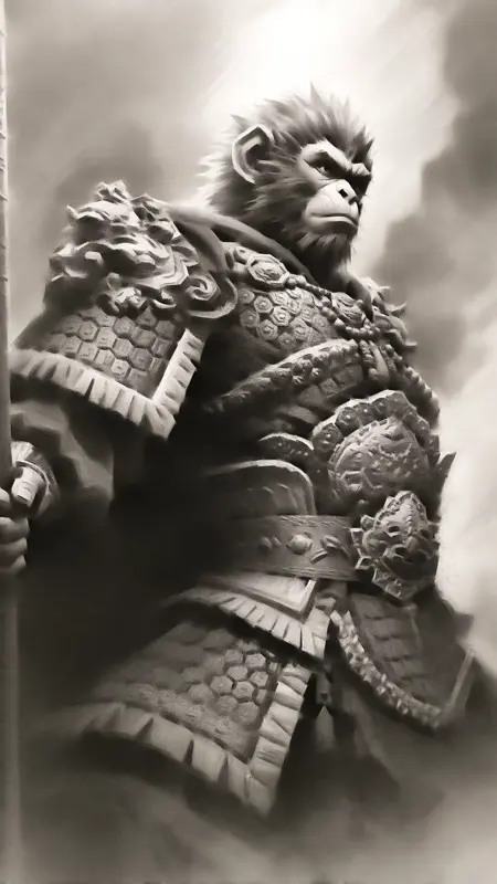 炭筆画技法、素描スタイルの炭筆作品。野生的なダイナミズムと筋肉の緊張を強調。中心にはうろつくベンガルトラが描かれ、月明かりに照らされたバラマンの茂みがぼかされた背景となる。右上から冷たい光が注ぎ込み、捕食者の体に鋭いチャイロスコーロのトランジションを生み出す。トラの縞模様は、鉛筆の側面を使って太い炭筆の筆致で表現され、腹部の毛並みには柔らかい炭のブレンドで段階的なグレーを形成。筋肉群は交差した線で立体感を出し、肩や後脚の緊張した腱は深く積層された炭粉で定義される。瞳孔は極度の白黒コントラストで鋭く仕上げ、虹彩には消しゴムの先でハイライトを加え、牙は負空間を利用して冷たい輝きを強調。トラは攻撃姿勢で蹲んでいる。爪の下の崩れた土には、砕けた炭の痕が点のように散らばり、尾の曲線は連続した弧で描かれる。背景の竹はドライブラッシングで奥行きを出し、時折鋭い線が霧を突き抜ける。空気全体は原始的なジャングルの危険性に満ち、すべての筆致が捕食者の致命的な優雅さで響いている。