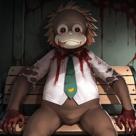 collared shirt, torn sleeves, green necktie, bottomless表情:
