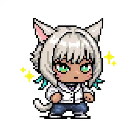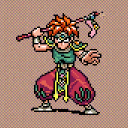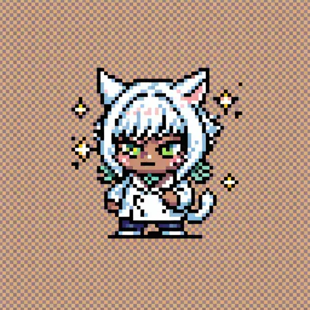 일관된 스케일을 유지하고 픽셀이 늘어나는 것을 방지하기 위해 그리드 배경이 추가되었습니다. 이는 부정적 프롬프트에 "grid, dithering, grid background, brown background"를 추가하여 제거할 수 있습니다. "white background, simple background"를 사용하거나 특정 배경을 프롬프트로 지정할 수 있습니다. 그러나 항상 효과는 보장되지 않습니다.
