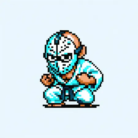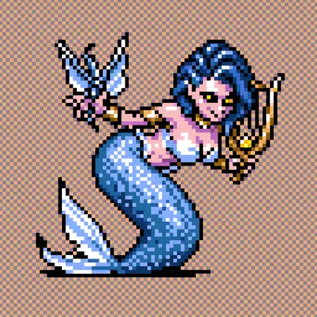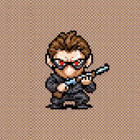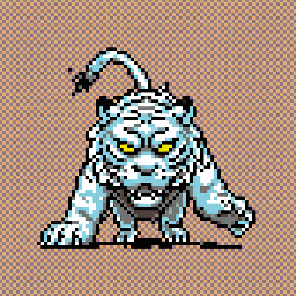 태그: masterpiece, best quality, amazing quality, very aesthetic, absurdres, newest, MQMON, pixel art, grid background, brown background, full body