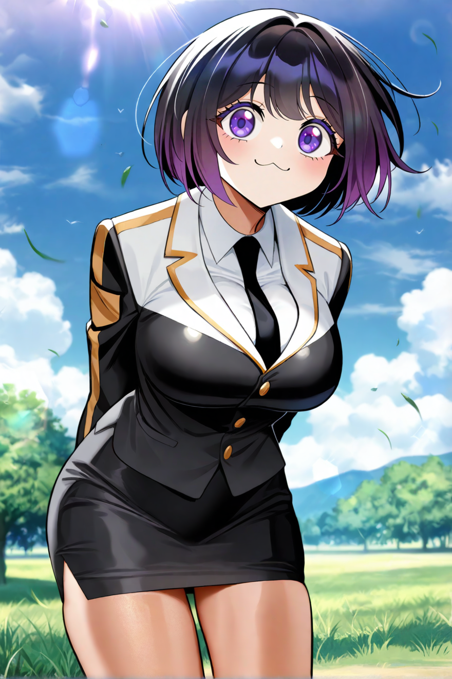 ユニフォーム、ツートーンのブレザー、黒スカート、黒ジャケット、鉛筆スカート、ネクタイ