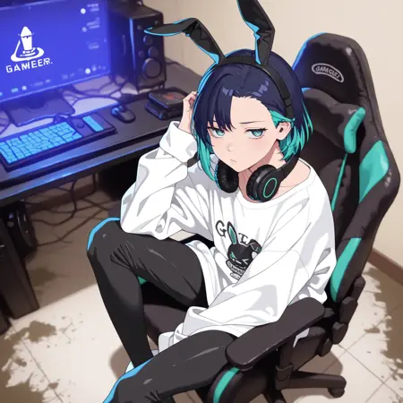 트리거 단어: 시논ome 린, 이색 머리카락, 단발, 바디수트, 어깨 패드,