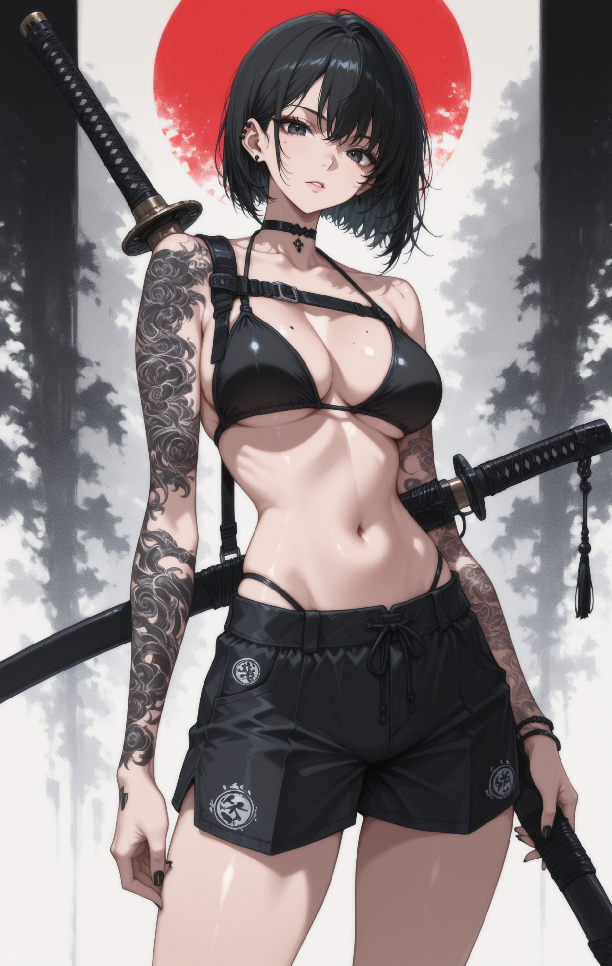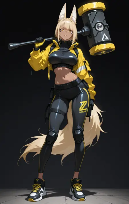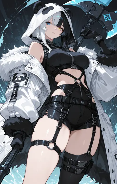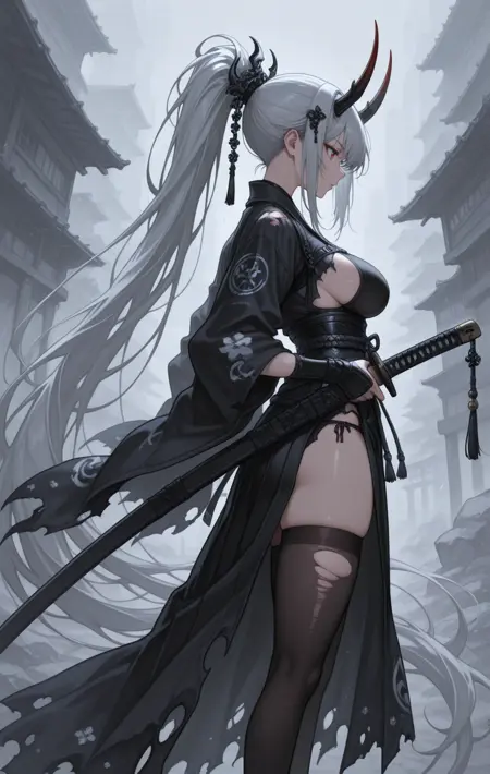 weapon, holding weapon, weapon on back, katana, long katana, sword, giant sword, giant axe, giant hammer, rifle, giant gun, scythe...(由于数据更多,sword和katana效果可能最佳)。服饰风格:通用提示词为