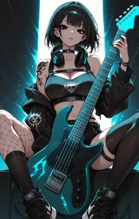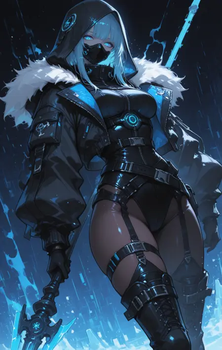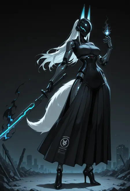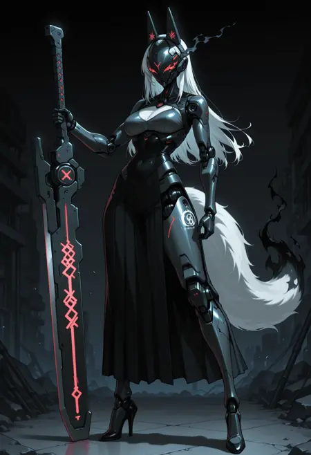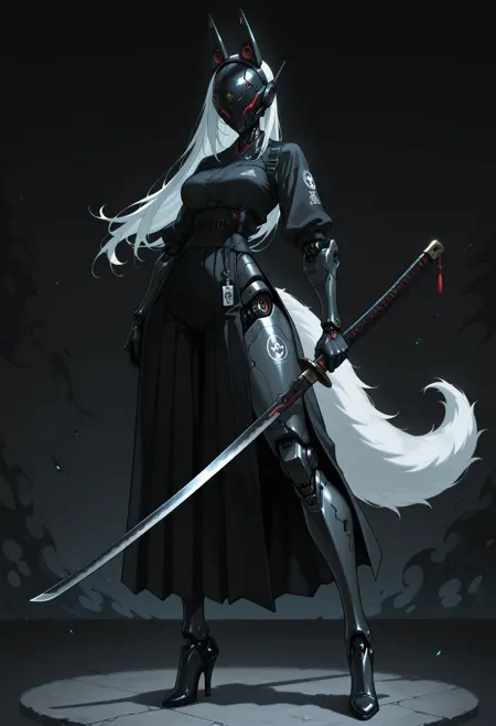 clothes details,其他提示词如:long skirt, short skirt, jacket, long jacket, long sleeves, hood, fake ears, thighhighs, armor, coat, dress, high heels, boots, thighhighs boots, mask, belts, gloves...(整体融合了传统服饰与现代风格如“科技风”)。部分提示词会覆盖检查点中的原有设定,因此结果可能略有不同。赛博身体: