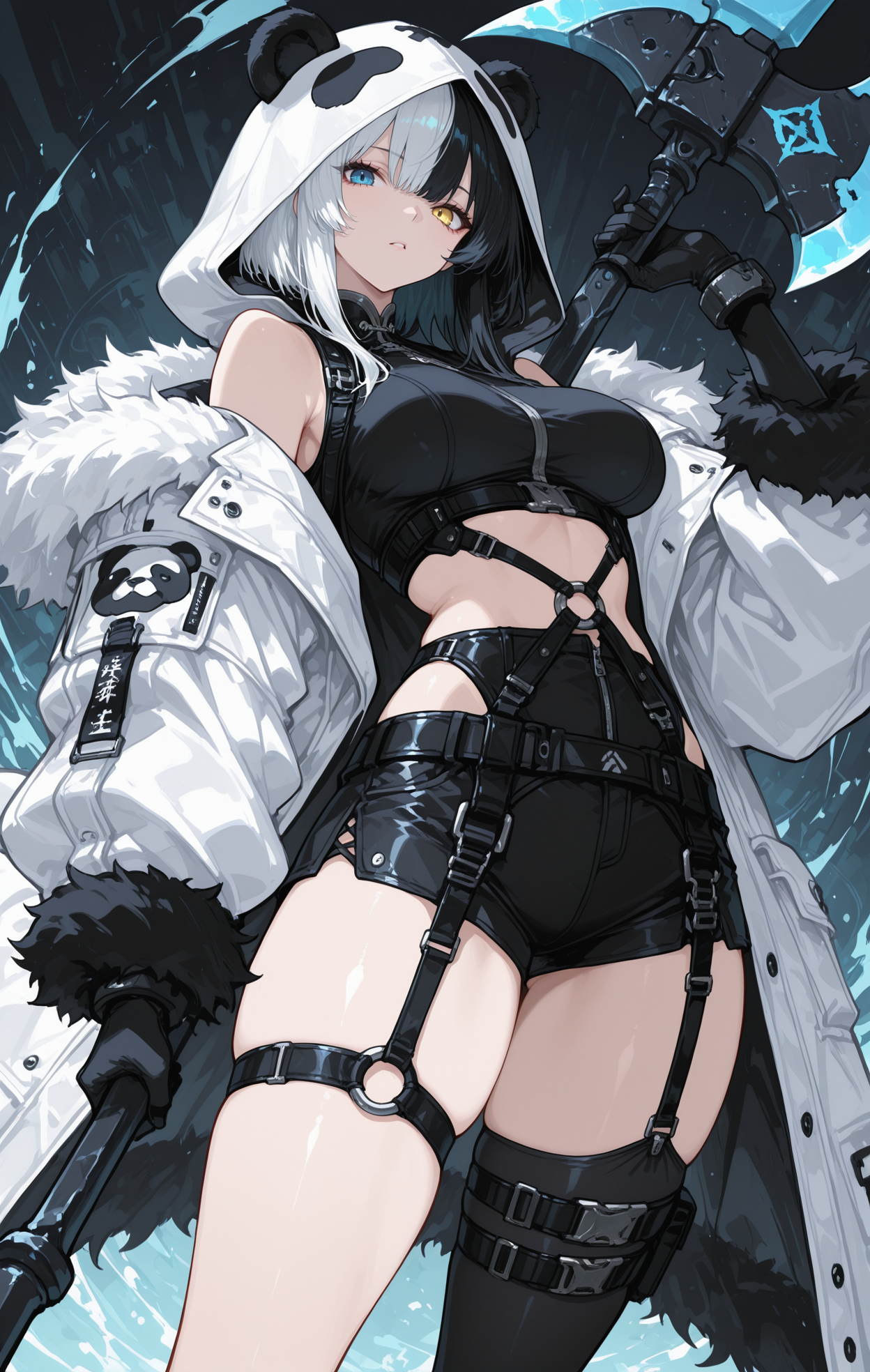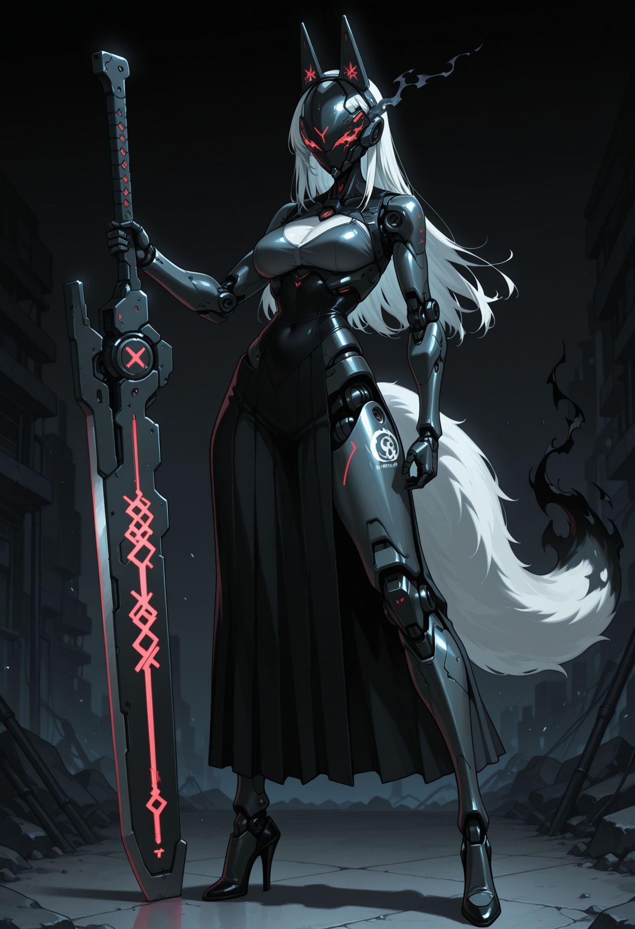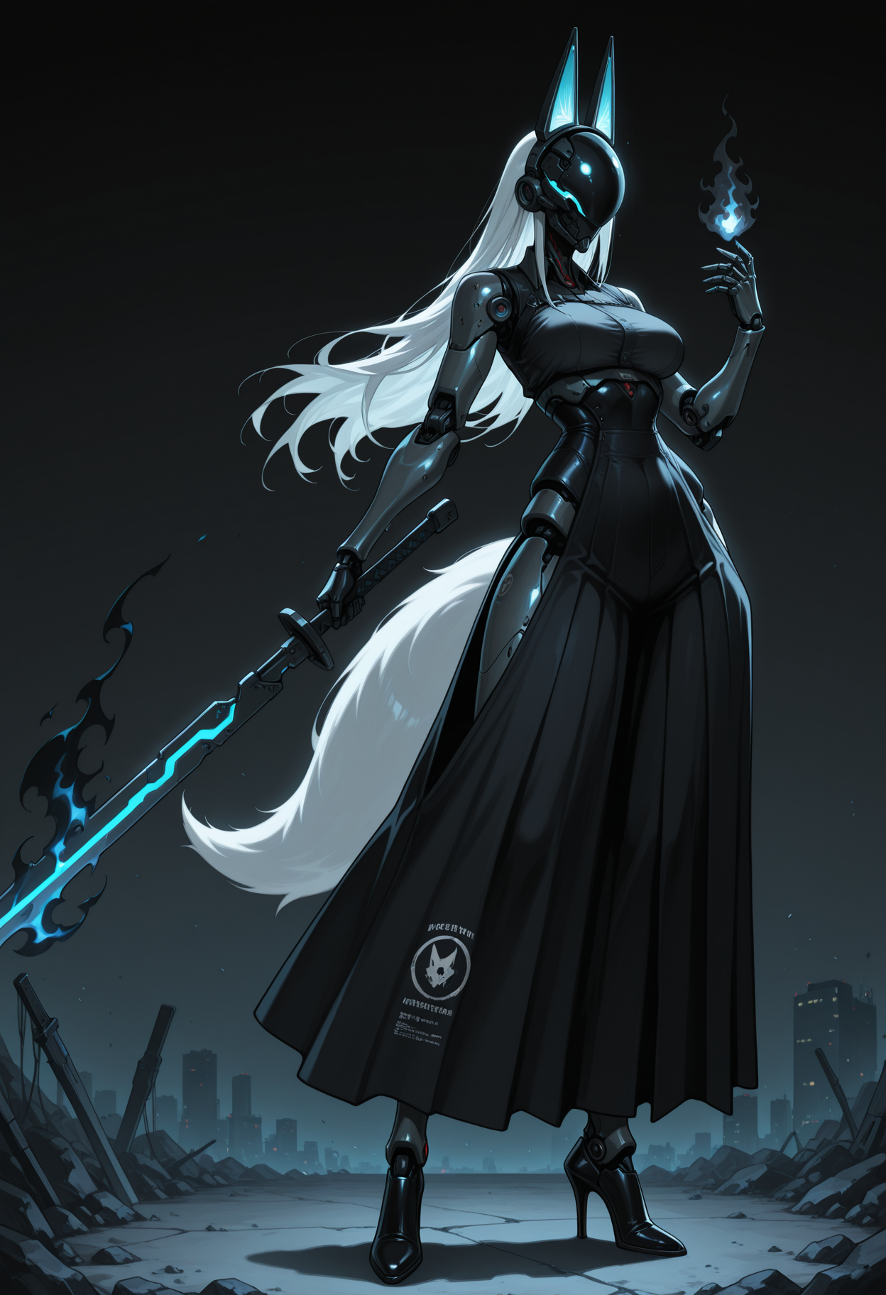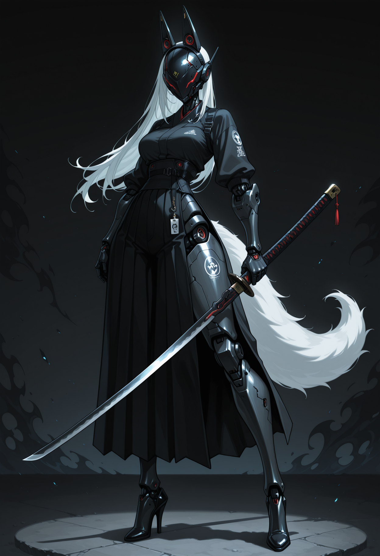 cyber body, cyber parts, cyber legs, robot parts, cyber mask, mouth mask, fake ears...耳朵与尾巴:通用提示词为