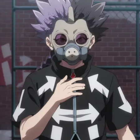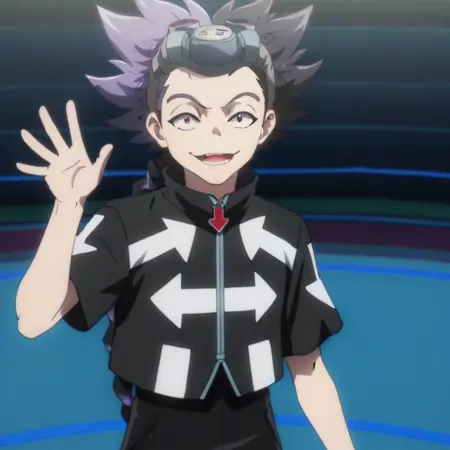 提示:男性,多彩头发,双色头发,黑发,紫发,尖刺头发,编发马尾,长发,红眼,夹克,短袖,裤子,鞋子,室内(竞技场/观众),室内(道场),户外(公园/树/栏杆/建筑),户外(小巷/砖墙/铁丝网)