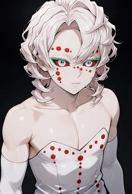 트리거 단어: 루이, 흰 머리, 색깔 있는 공막, 붉은 공막, 흰 눈, 홍채의 점, 연한 초록색 속눈썹, 연한 초록색 네일 폴리쉬, 눈썹 없음, 얼굴 페인팅, 근육,