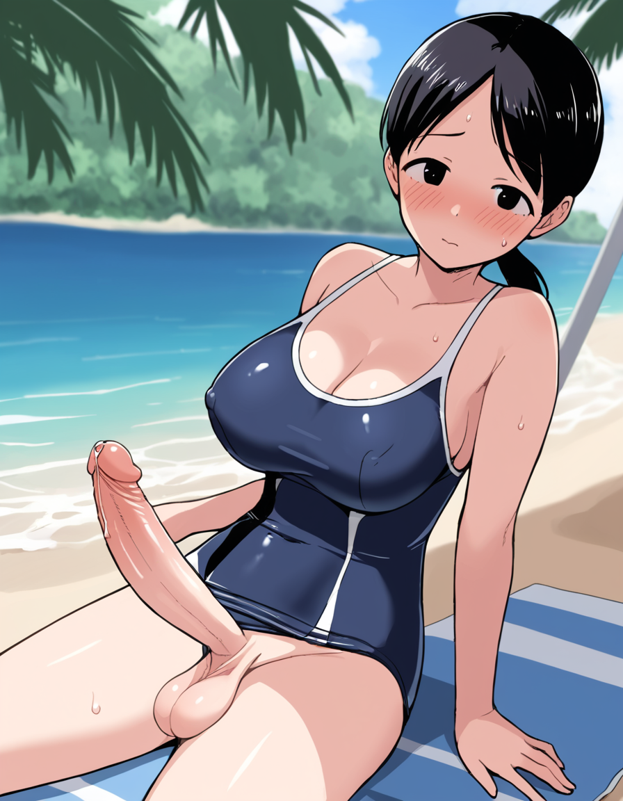 Trigger words: Futana Risa, breasts, large breasts, ponytail, black eyes