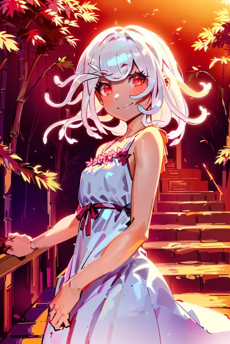 And then if you want to make her medusa style replace all hairstyle and outfit words with white hair, snake hair, albino, red eyes, white dress. I noticed model still struggles with hair even remotely looking like snakes here so you might want to put more weight on that.
