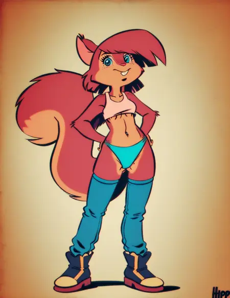 Trained on my mix "Fluffy Univrse" or FluffyRock (Vpred). Generations on other models in some cases may show less correct results.